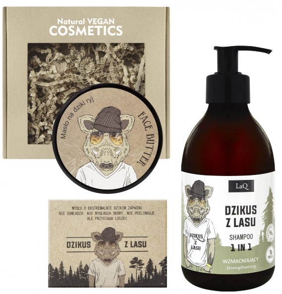 Zestaw Dzikus z Lasu z szamponem, masłem, oraz mydłem to kosmetyki które nie odmładzają, niewygładzają skóry, nie peelingują ale za to przyciąga konkretne loszki.