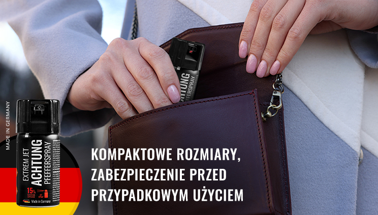 Użycie gazu jest proste i instynktowne – wystarczy odbezpieczyć pojemnik, wycelować w twarz napastnika i nacisnąć przycisk. Mechanizm przypomina obsługę klasycznego dezodorantu, dzięki czemu nawet osoby bez doświadczenia są w stanie użyć go skutecznie. Gaz pieprzowy Achtung eXtrem Jet 15% OC działa również na osoby będące pod wpływem alkoholu, narkotyków lub środków odurzających, co czyni go szczególnie skutecznym środkiem obrony w sytuacjach zagrożenia życia lub zdrowia.