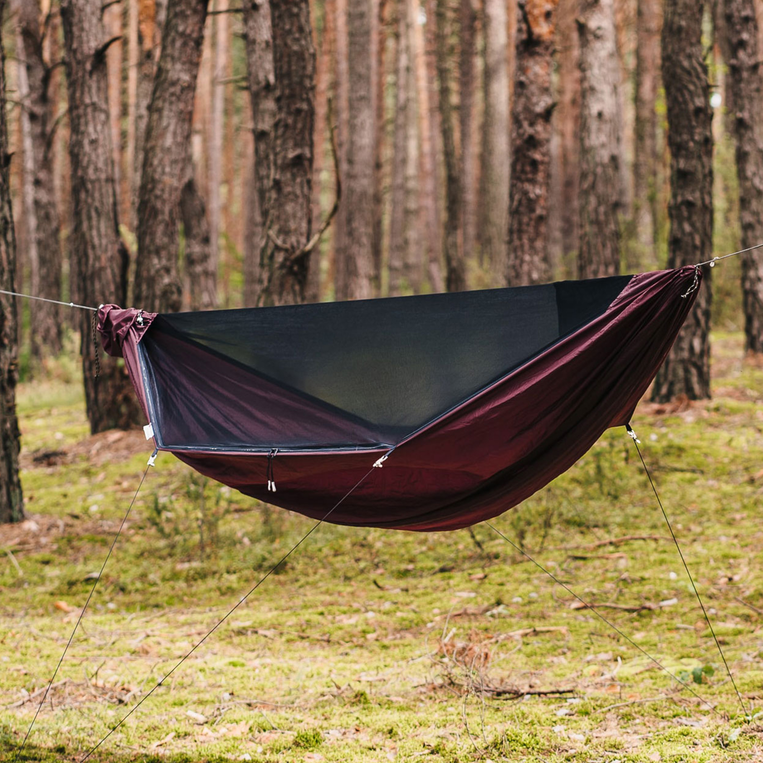 Hamak Lesovik Draka z zawieszeniem Sneka Burgundy Ron – komfortowy nocleg w terenie