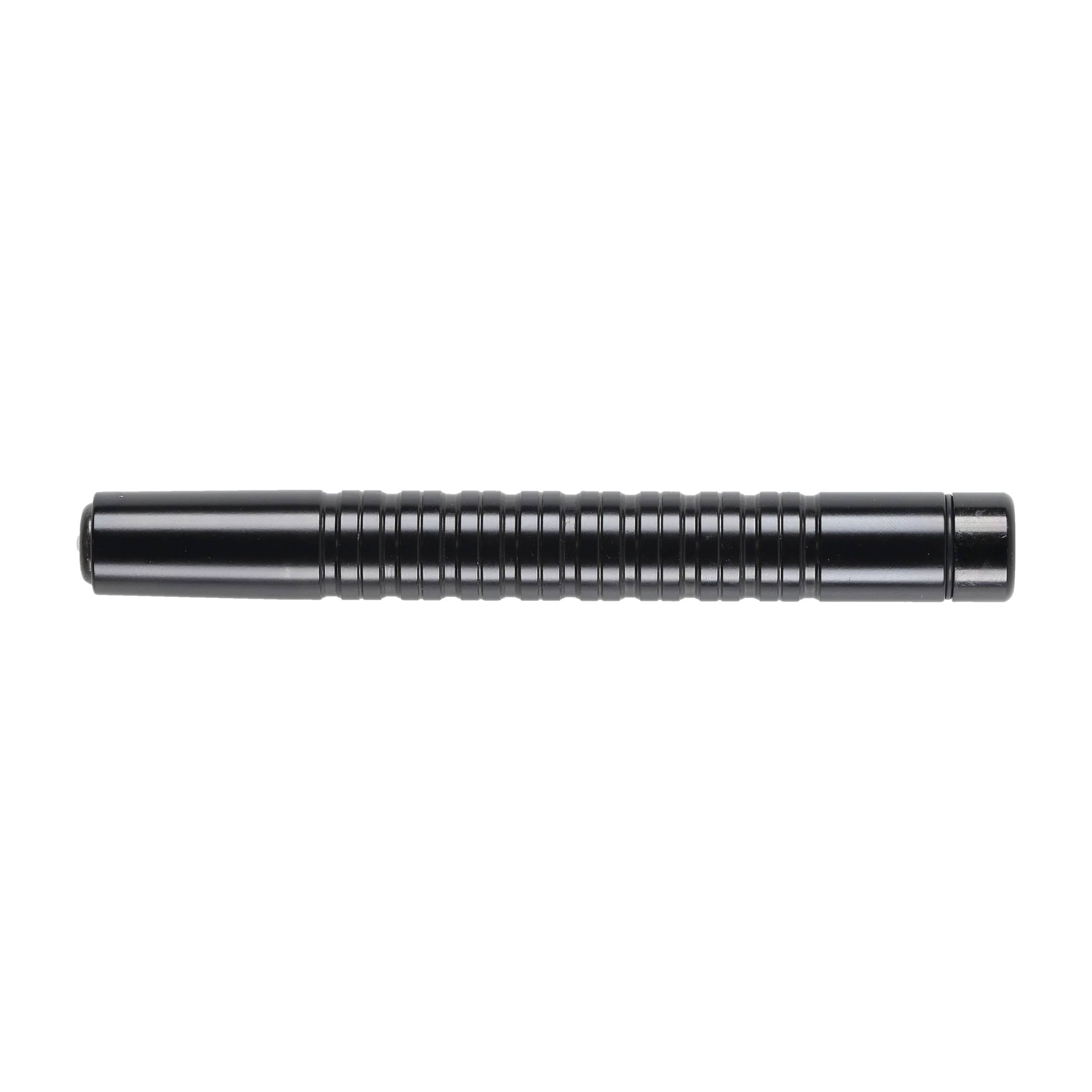 Rękojeść pałki teleskopowej ESP 18″ ExB-18HS srebrnej hartowanej została wykonana z lakierowanej na czarno stali i posiada wyraźnie karbowaną powierzchnię. Takie rozwiązanie zapewnia pewny, stabilny chwyt, nawet w sytuacjach wymagających szybkiego działania lub przy niesprzyjających warunkach atmosferycznych. Brak gumowej okładziny nie jest przypadkowy – dzięki temu pałka nie zahacza o elementy odzieży ani ekwipunek, co znacząco ułatwia dyskretne przenoszenie oraz błyskawiczne dobywanie.
