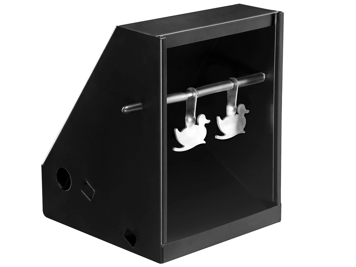 Kulochwyt kaczki Perfecta 17×17 cm – bezpieczny i trwały kulochwyt do wiatrówek max. 7,5 J. Gruba stalowa blacha, stożkowa tylna ścianka, 4 cele metalowe, 10 tarcz papierowych, szybki montaż i łatwe czyszczenie. Idealny do rekreacyjnego i treningowego strzelania w domu i na zewnątrz.