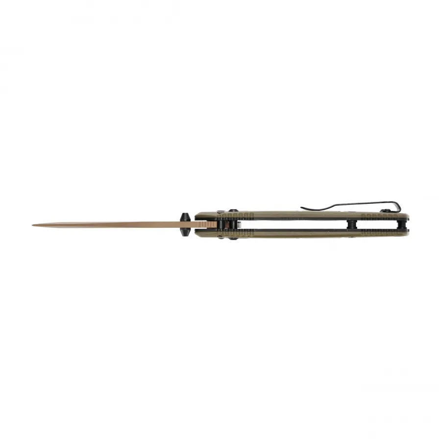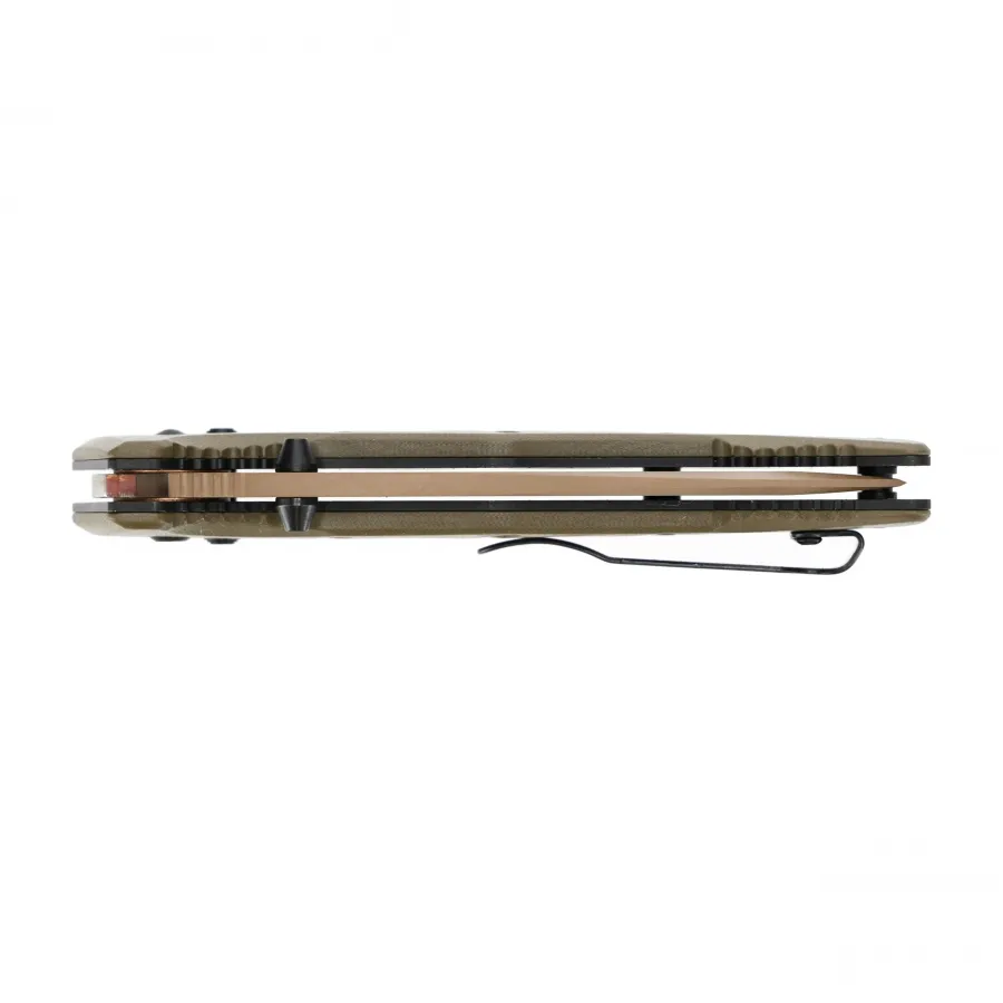 Teksturowana powierzchnia oraz profilowanie 3D zapewniają pewny chwyt nawet w trudnych warunkach. Półotwarta konstrukcja rękojeści ułatwia utrzymanie czystości, co jest szczególnie istotne podczas intensywnego użytkowania w terenie. Dodatkowym atutem jest przekładany klips, umożliwiający wygodne i dyskretne noszenie noża w kieszeni.