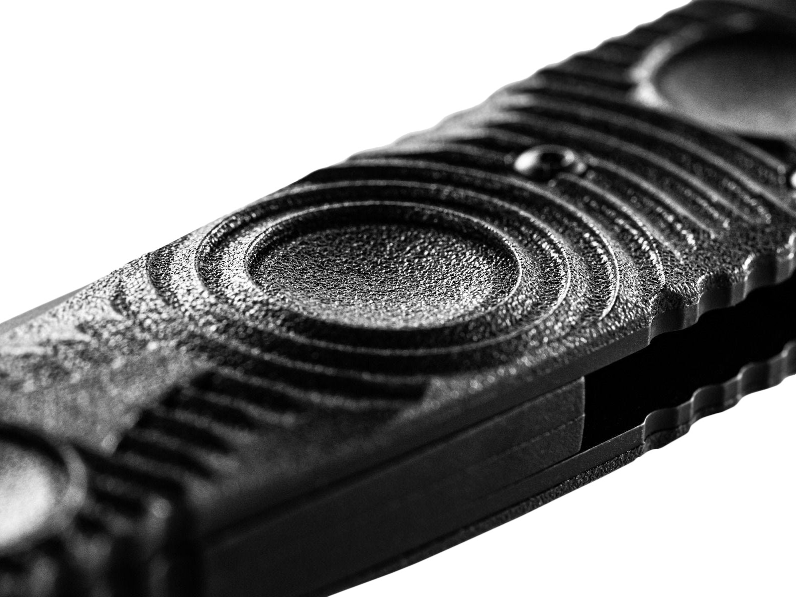 Przycisk sterujący został precyzyjnie frezowany, co zapewnia wygodną obsługę nawet w rękawicach. Mechanizm działa płynnie i bezpiecznie, eliminując ryzyko przypadkowego otwarcia. Ostrze blokowane jest w trzech punktach, co gwarantuje stabilność i bezpieczeństwo podczas użytkowania.