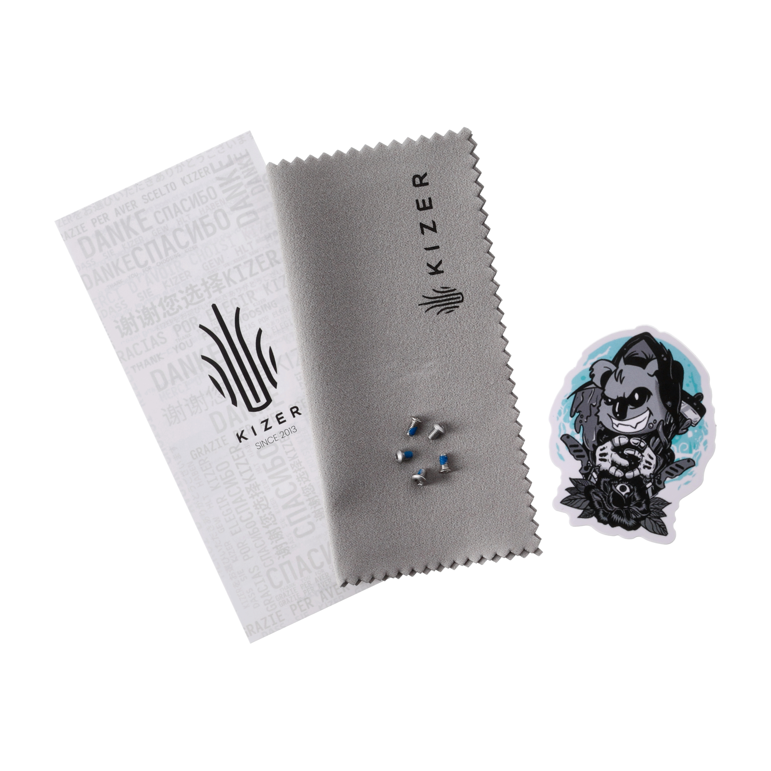 W zestawie znajduje się również ściereczka z mikrofibry, naklejka oraz estetyczne pudełko prezentowe, co czyni ten model doskonałym pomysłem na prezent dla pasjonatów noży.