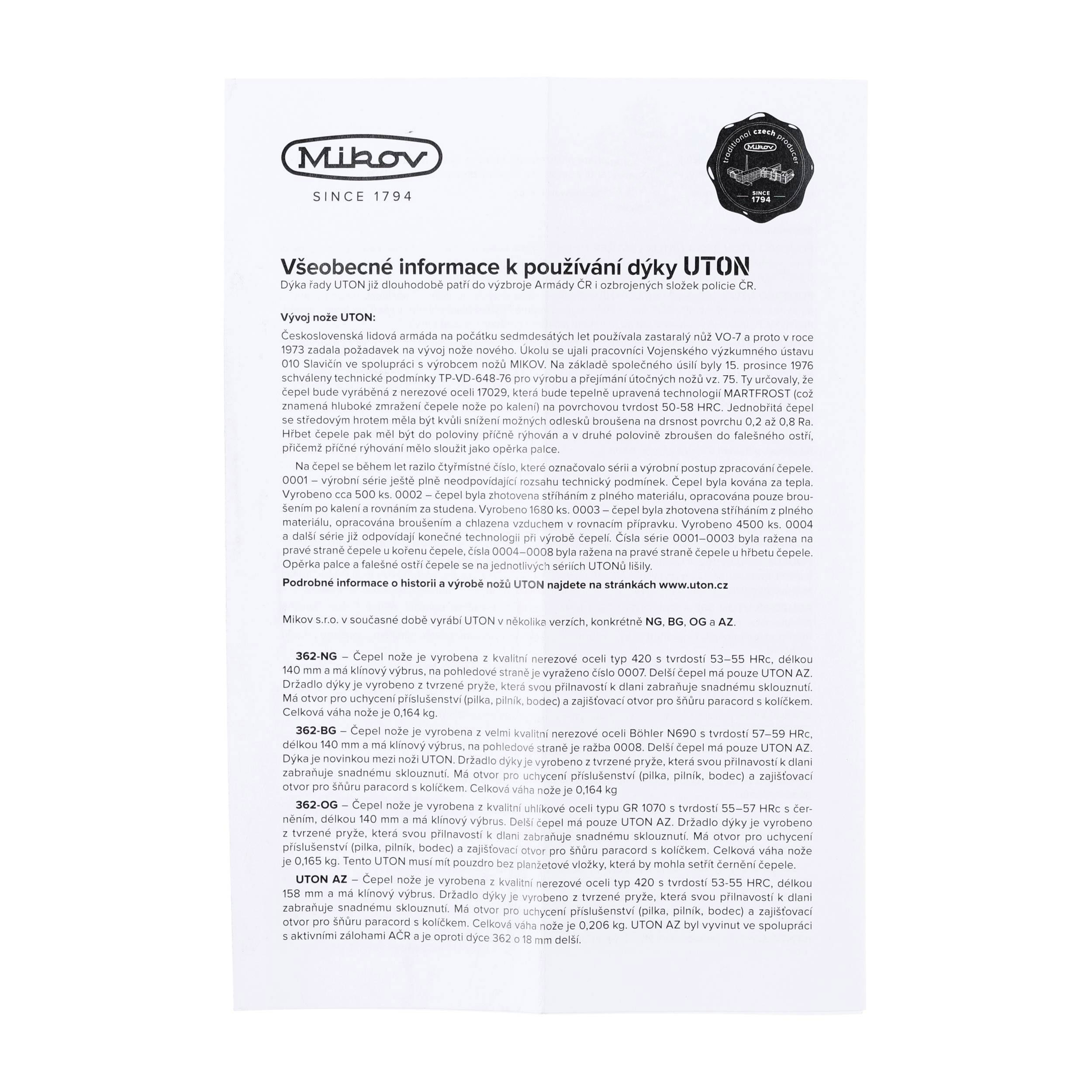 Zestaw Mikov UTON 362‑NG‑4 / Police to kompletne rozwiązanie zaprojektowane z myślą o wymagających sytuacjach — zarówno tych związanych z aktywnościami outdoorowymi, jak też zadaniami specjalnymi. Trafia w ręce osób, które potrzebują niezawodnego noża z głownią stałą oraz kilku narzędzi towarzyszących — pilnika, piły do drewna z podwójnym ostrzem, szpikulca i linki z paracordu — wszystko zamknięte w eleganckiej skórzanej pochwie mocowanej na pas. Zestaw ten może stanowić istotny element wyposażenia survivalowego lub uzupełnienie taktyczne.