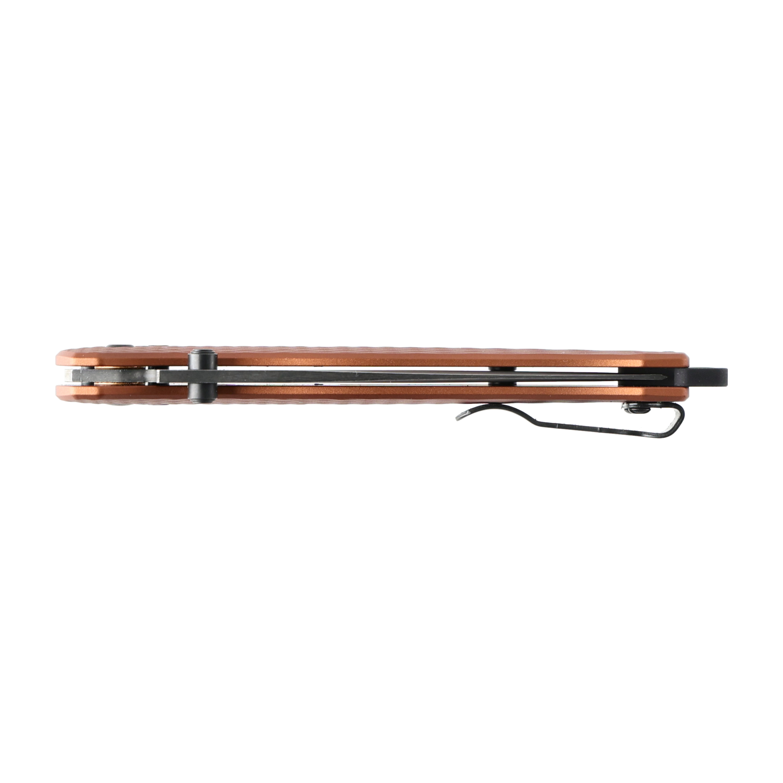Rękojeść wykonano z anodowanego aluminium 6061-T6, co zapewnia doskonałą wytrzymałość przy jednoczesnym zachowaniu minimalnej masy, odporność na odkształcenia i uszkodzenia mechaniczne. Agresywne teksturowanie zwiększa pewność chwytu nawet w rękawicach lub wilgotnych dłoniach, a ergonomiczne poszerzenie u nasady poprawia kontrolę nad nożem podczas dynamicznych działań. Kolor spalonej miedzi nadaje konstrukcji unikalny, taktyczny charakter, wyróżniający model na tle klasycznych folderów, jednocześnie podkreślając jego nowoczesny design i profesjonalne przeznaczenie.