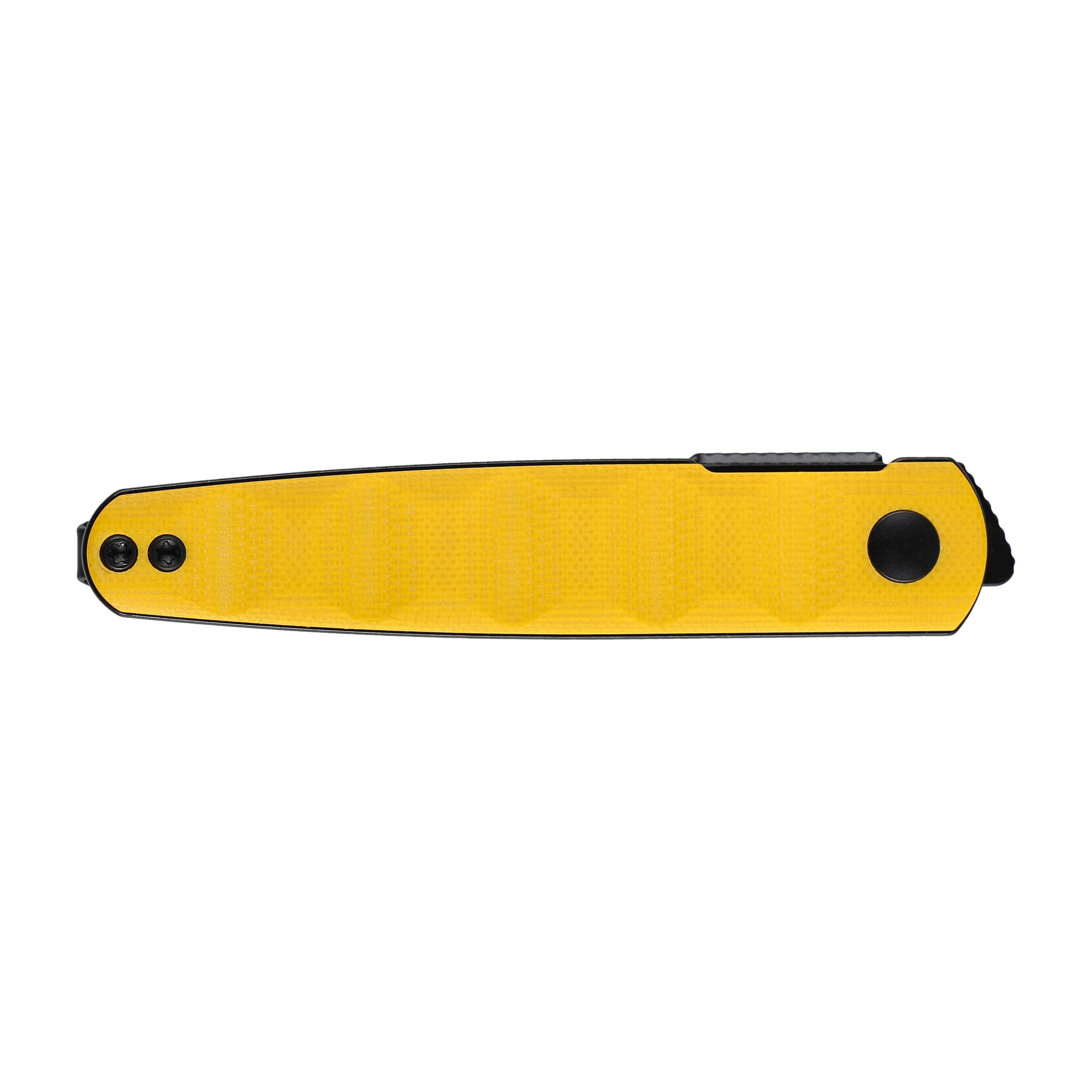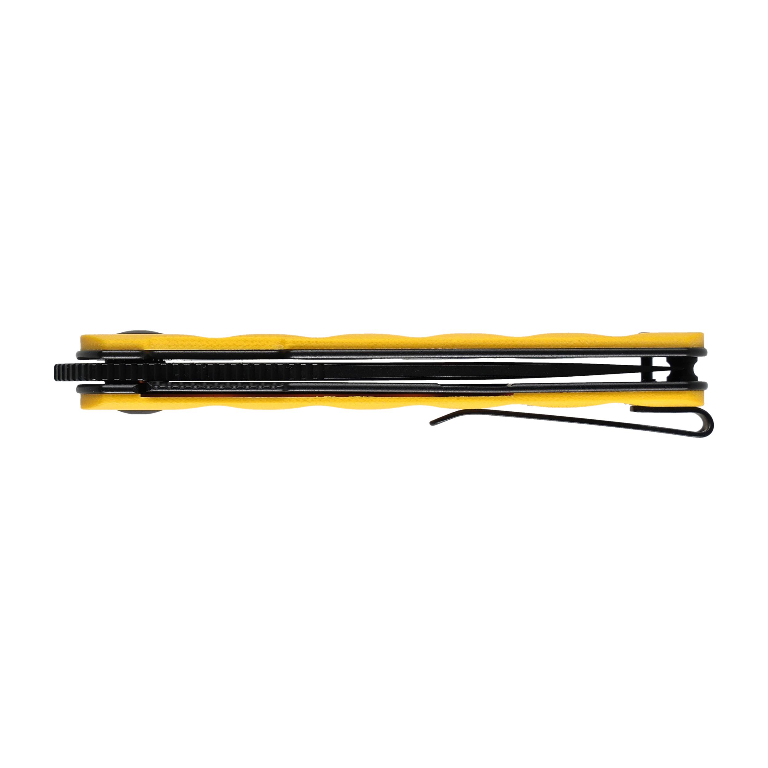 Prezentowany model posiada żółtą rękojeść, co nadaje mu niepowtarzalnego wyglądu oraz ułatwia odnalezienie noża w plecaku lub wśród narzędzi. Dodatkowo, nóż wyposażono w klips mocujący, umożliwiający wygodne przenoszenie go w kieszeni lub na pasku. Klips można przełożyć na drugą stronę, co czyni nóż wygodnym dla osób prawo- i leworęcznych.