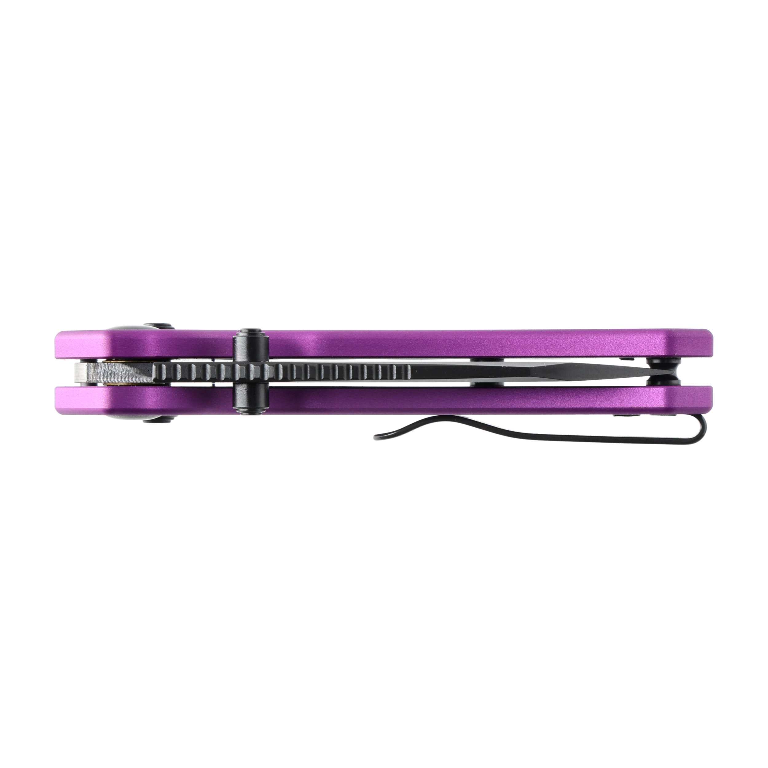 Rękojeść o długości 93 mm wykonano z wytrzymałego aluminium, które łączy niską wagę (76 g) z dużą odpornością na uszkodzenia mechaniczne. Subtelna faktura powierzchni i ergonomiczne wyprofilowanie zapewniają pewny chwyt, a intensywnie fioletowy kolor nadaje nożowi nowoczesnego, wyrazistego charakteru.