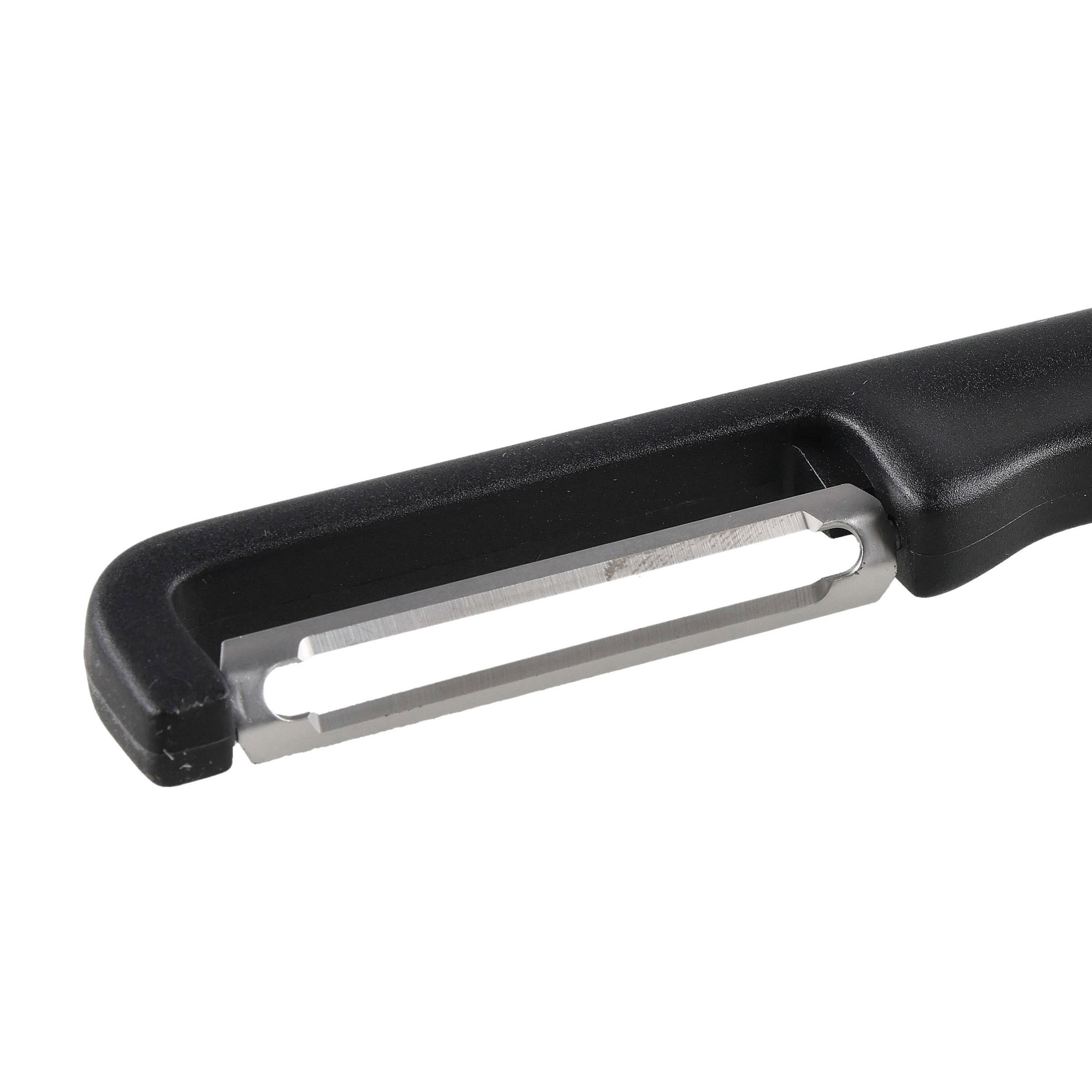 Obieraczka do warzyw Victorinox Iota 6.0942.3 to nowoczesna, ergonomiczna obieraczka do warzyw i owoców, zaprojektowana przez szwajcarską markę Victorinox – lidera wśród producentów precyzyjnych narzędzi kuchennych. Ten funkcjonalny model w eleganckim czarnym kolorze łączy minimalistyczny wygląd z wyjątkową trwałością i wygodą użytkowania. Dzięki pionowemu ostrzu i ergonomicznej rękojeści z tworzywa, obieraczka pozwala szybko i sprawnie usuwać skórki z różnych produktów – zarówno twardych, jak ziemniaki, jak i miękkich, np. pomidorów.