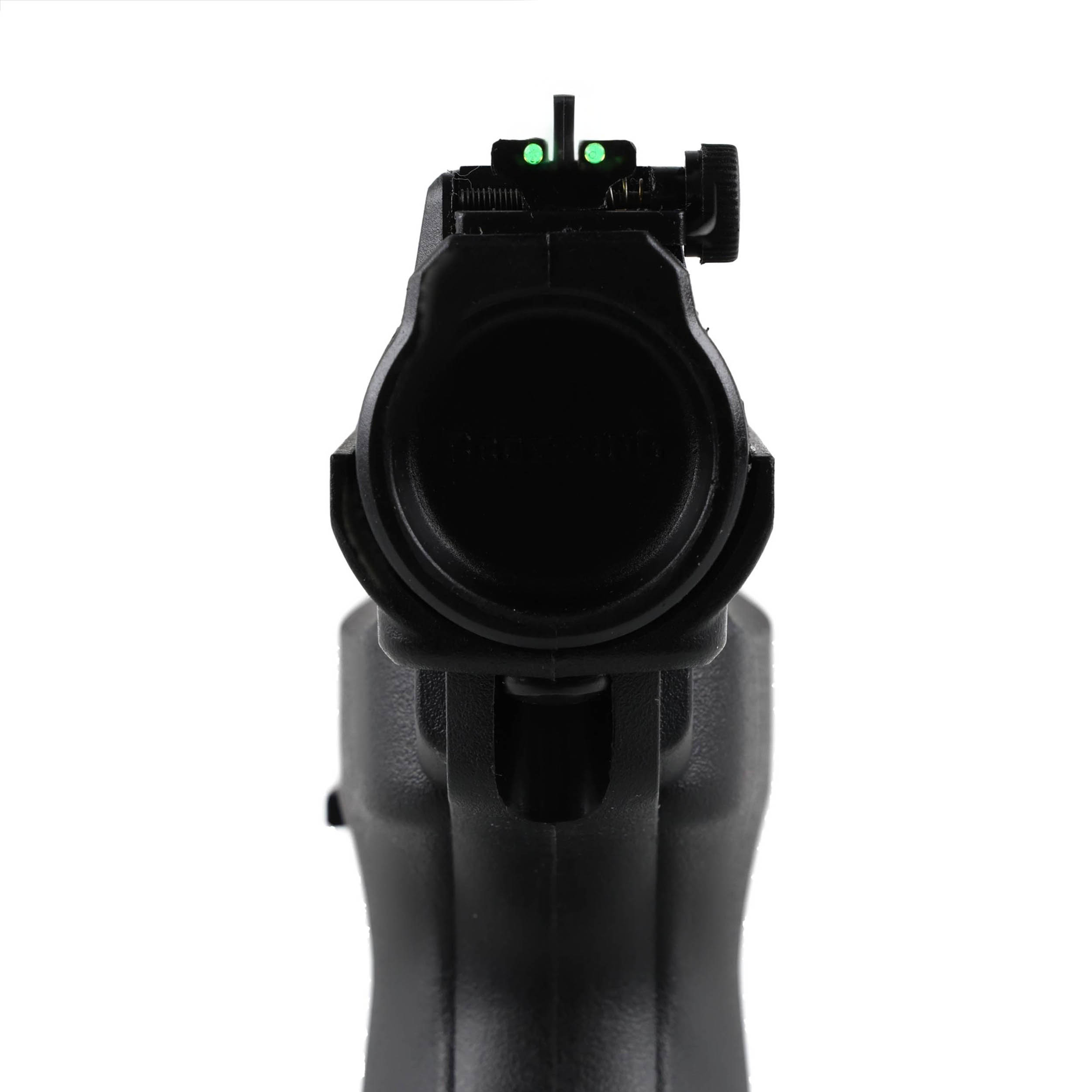 Wiatrówka Browning Buck Mark Magnum 4,5 mm wyposażona jest w mechaniczne przyrządy celownicze, w tym regulowaną szczerbinkę światłowodową oraz muszkę, które zapewniają dobrą widoczność nawet przy słabym oświetleniu.