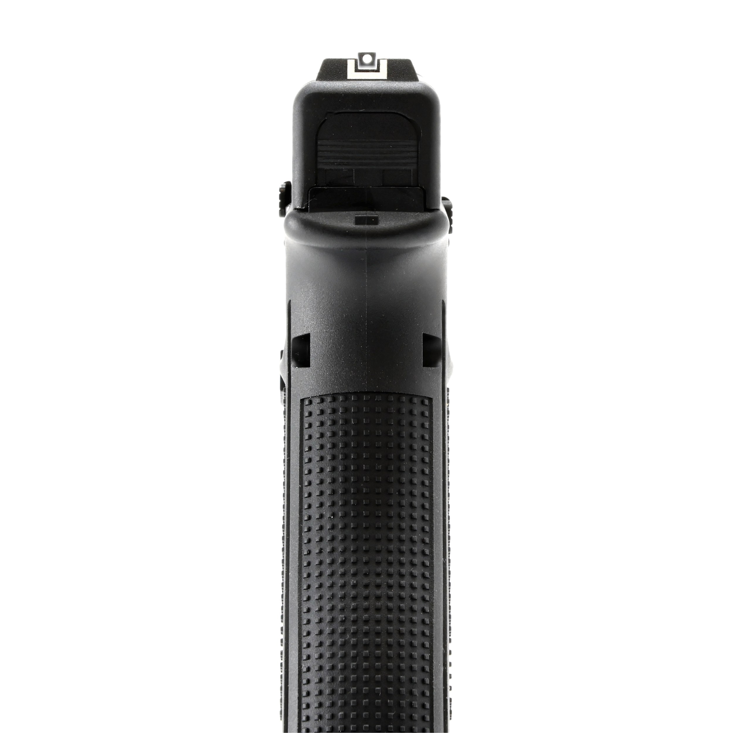 Dodatkowo na szkielecie oraz zamku naniesiono licencjonowane oznaczenia Glocka, w tym numer seryjny, co jeszcze bardziej podkreśla realizm tej repliki. Ergonomiczna fakturowana rękojeść zapewnia pewny chwyt, a powiększony zwalniacz magazynka ułatwia obsługę.
