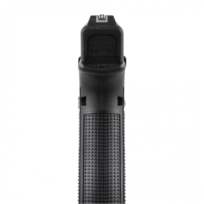 Pistolet wiatrówka Glock 17 MOS gen 5 4,5 mm to wierna replika kultowego austriackiego pistoletu Glock 17, wyposażona w realistyczny system blowback na CO₂ oraz opcję montażu kolimatora MOS. Model cechuje się solidną konstrukcją z metalowym zamkiem i polimerowym szkieletem, a także wieloma elementami identycznymi z oryginałem – takimi jak fakturowana rękojeść czy obustronna dźwignia zrzutu zamka.
