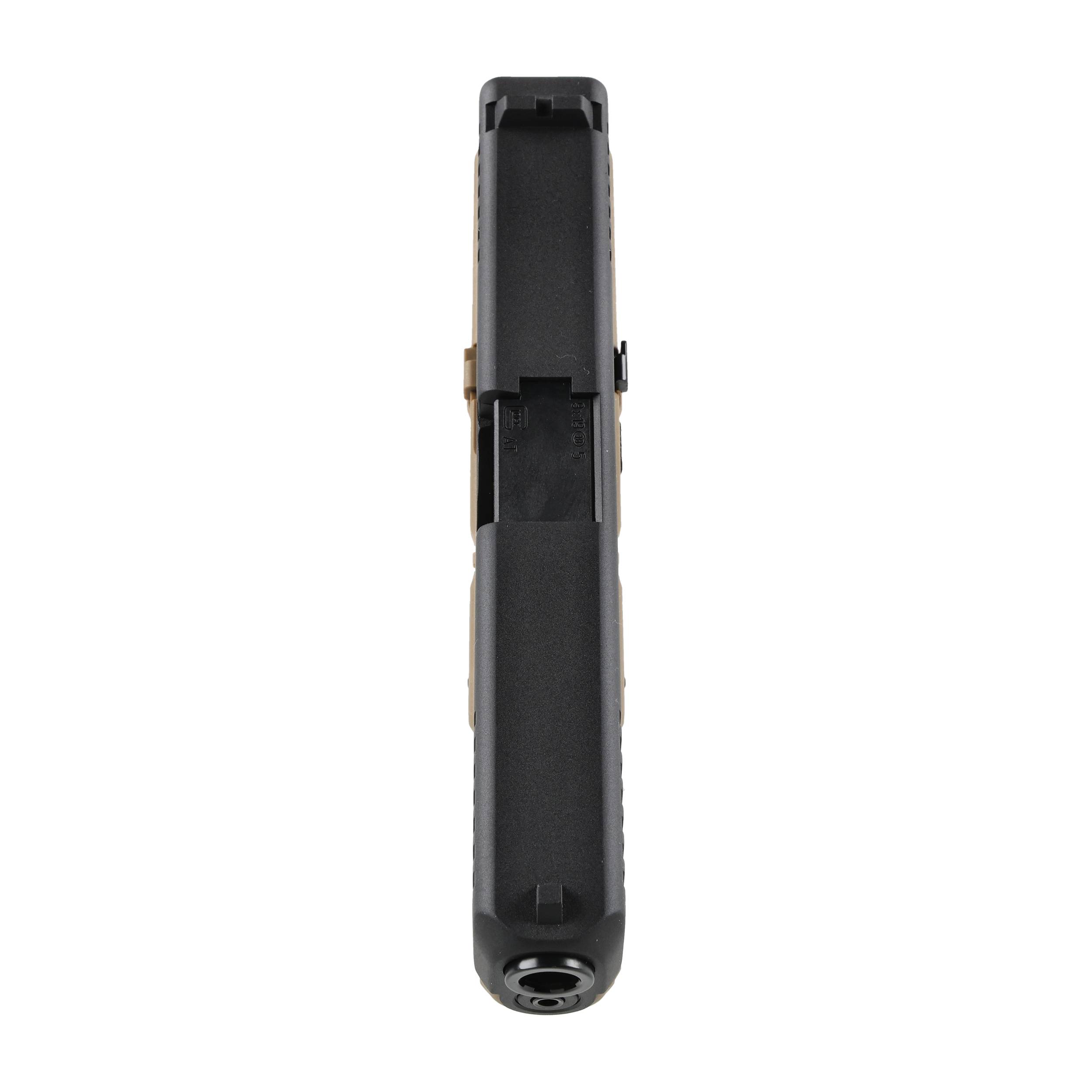 Wersja Glock 17 Gen 5 Coyote wyróżnia się polimerowym szkieletem w charakterystycznym pustynnym kolorze. Antypoślizgowa faktura rękojeści, powiększony zatrzask magazynka oraz zintegrowany lejek do szybkiej wymiany magazynka to elementy, które oddają ducha oryginalnego Glocka 17. Metalowy zamek i obustronna atrapa zrzutu zamka podkreślają dbałość o detale i odwzorowanie w każdym calu. Co więcej, zgodność z wymiarami i wagą pierwowzoru pozwala na stosowanie standardowych kabur do broni palnej, takich jak Safariland czy Blackhawk.