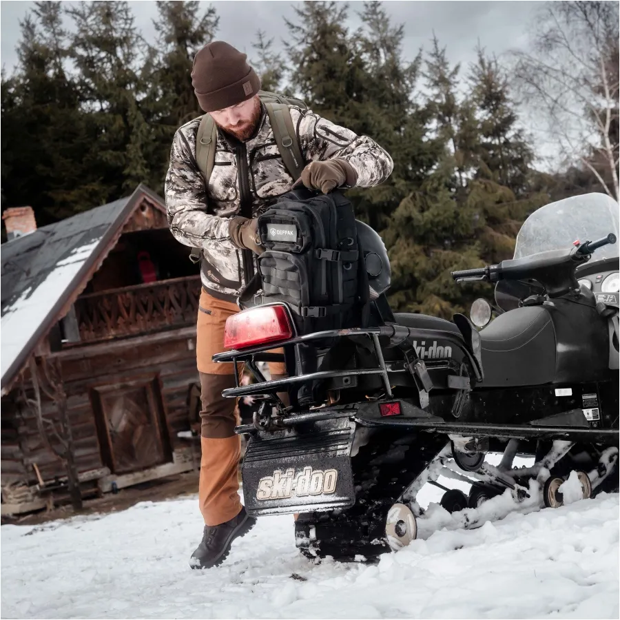System MOLLE/PALS daje pełną wolność w modyfikacji i rozbudowie plecaka o dodatkowe zasobniki, czyniąc go narzędziem wielozadaniowym – od codziennego EDC po profesjonalne zastosowania militarne i bushcraftowe. Ergonomia użytkowania stoi na najwyższym poziomie dzięki zastosowaniu wentylowanego panelu tylnego oraz rozbudowanego systemu regulacji pasów naramiennych, biodrowego i piersiowego, co gwarantuje stabilność i komfort nawet przy pełnym obciążeniu. Ring pullery przy bryzgoszczelnych zamkach to detal, który realnie podnosi komfort, umożliwiając sprawną obsługę bagażu w rękawicach. Plecak posiada również dedykowane miejsce na wkład hydracyjny, co jest niezbędne podczas intensywnego wysiłku w terenie. Czarny, profesjonalny kolor oraz panel Velcro do personalizacji dopełniają całości, tworząc produkt trwały, przemyślany i niezwykle funkcjonalny, który przetrwa lata intensywnej eksploatacji w najtrudniejszym terenie.