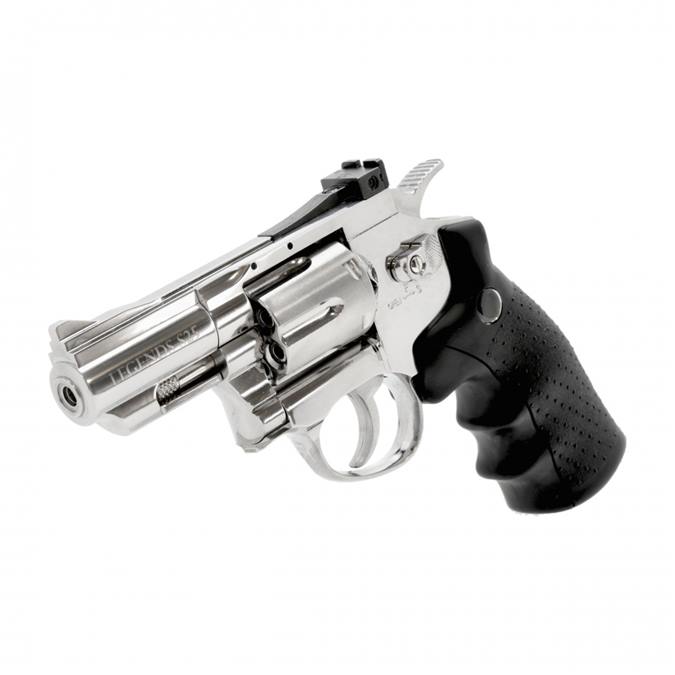 Rewolwer Legends S25 4,5 mm to pneumatyczny rewolwer CO₂ o realistycznym wyglądzie i funkcjonalności, wykonany w całości z metalu i wykończony elegancką, niklowaną powłoką. Jego precyzyjna budowa oraz autentyczne detale czynią go doskonałym wyborem do rekreacyjnego strzelania i treningu strzeleckiego. Model dostępny jest w trzech długościach lufy: S25 (2,5 cala), S40 (4 cale) i S60 (6 cali), co pozwala na wybór wersji najlepiej odpowiadającej indywidualnym preferencjom.