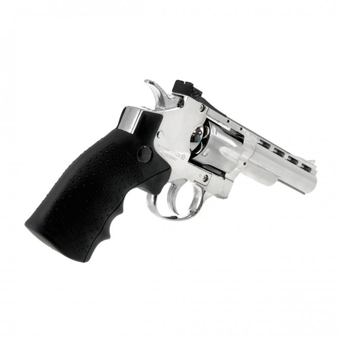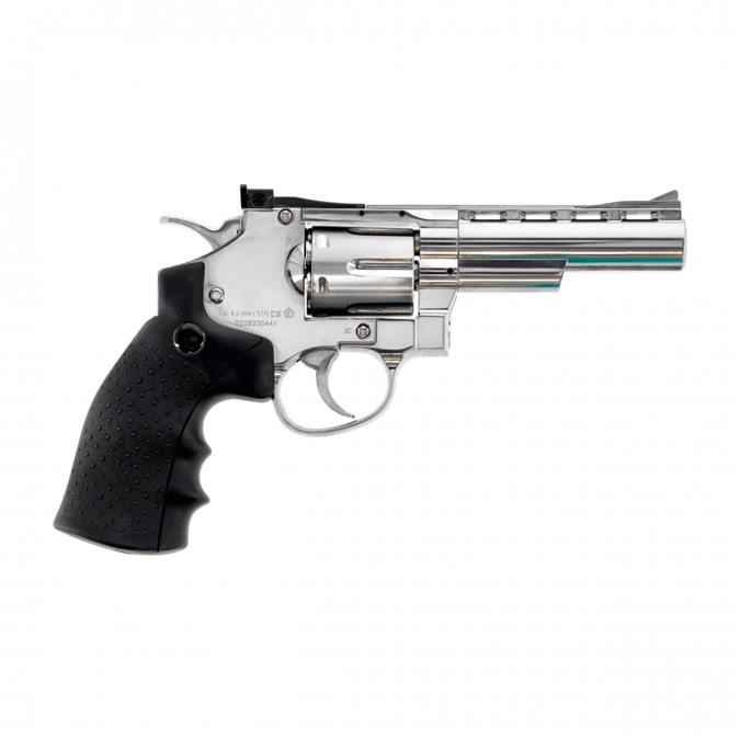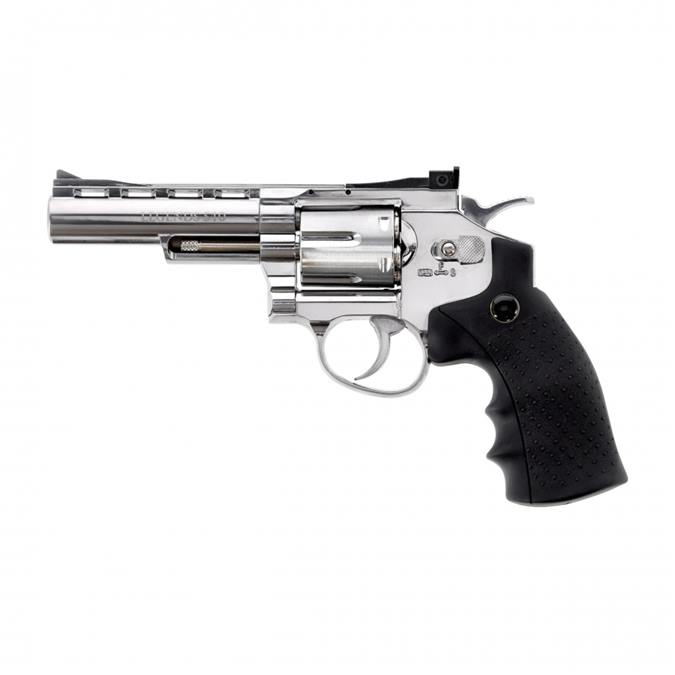 Rewolwer Legends S40 jest wykonany z metalu i wykończony elegancką niklowaną powłoką, co zapewnia trwałość oraz wyjątkowy wygląd. Dzięki sześciokomorowemu bębnowi, do którego ładowane są łuski ze śrutem typu diabolo, obsługa wiatrówki odzwierciedla działanie klasycznego rewolweru. To idealny model dla osób, które chcą poczuć realizm użytkowania broni palnej bez konieczności posiadania zezwolenia.