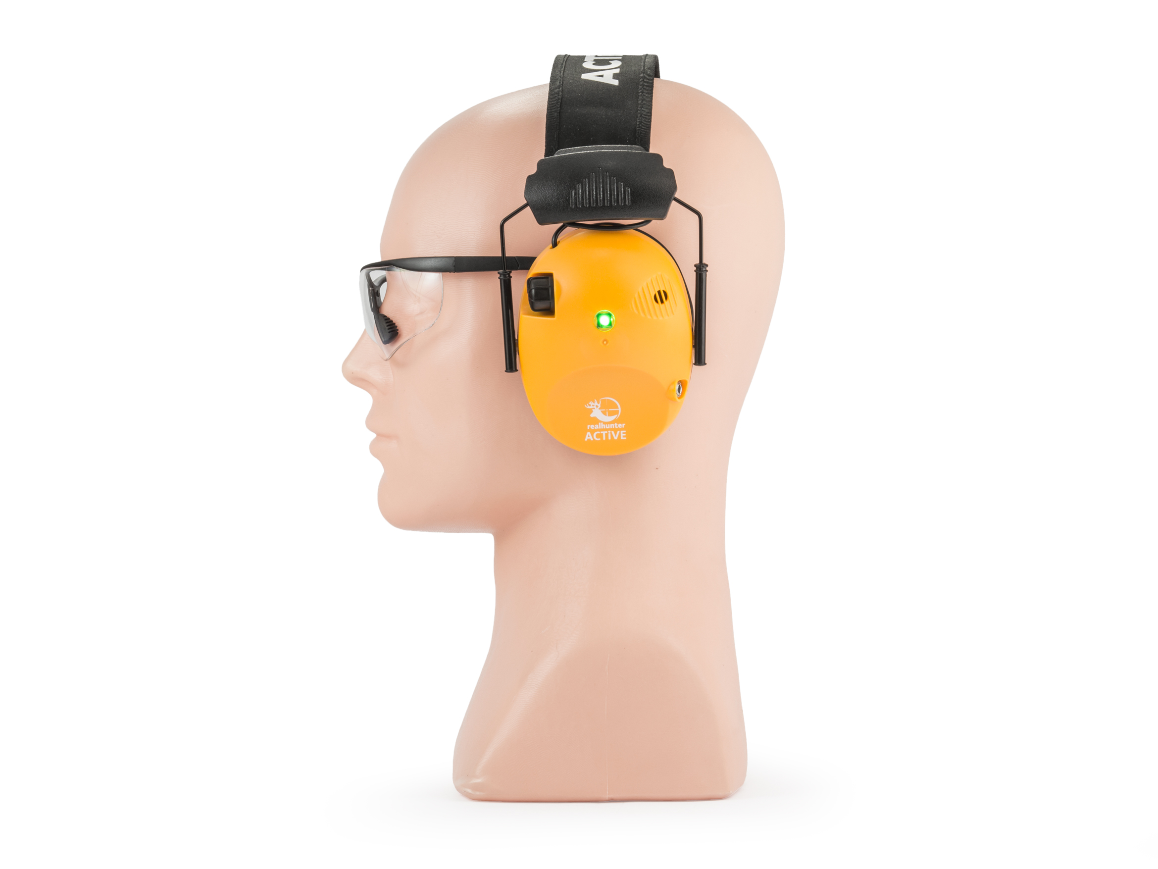 Słuchawki RealHunter Active PRO pomarańczowe + okulary – aktywne ochronniki słuchu z certyfikowanymi okularami ochronnymi
