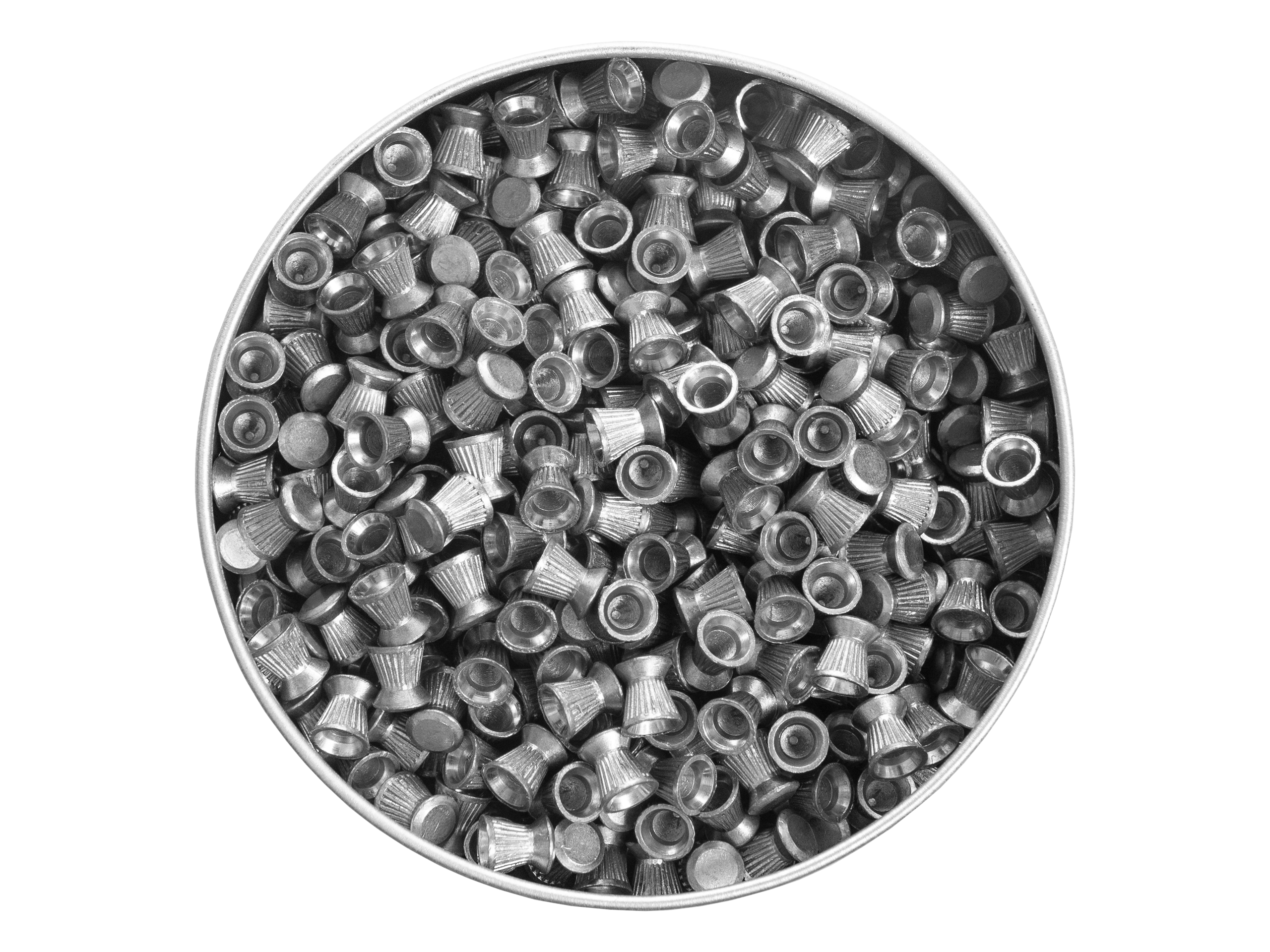 Opakowanie zawiera 500 sztuk śrucin, które zamknięte są w solidnym aluminiowym pojemniku. Dzięki temu śrut jest zabezpieczony przed uszkodzeniami mechanicznymi oraz rozsypaniem, co ułatwia transport i przechowywanie.
