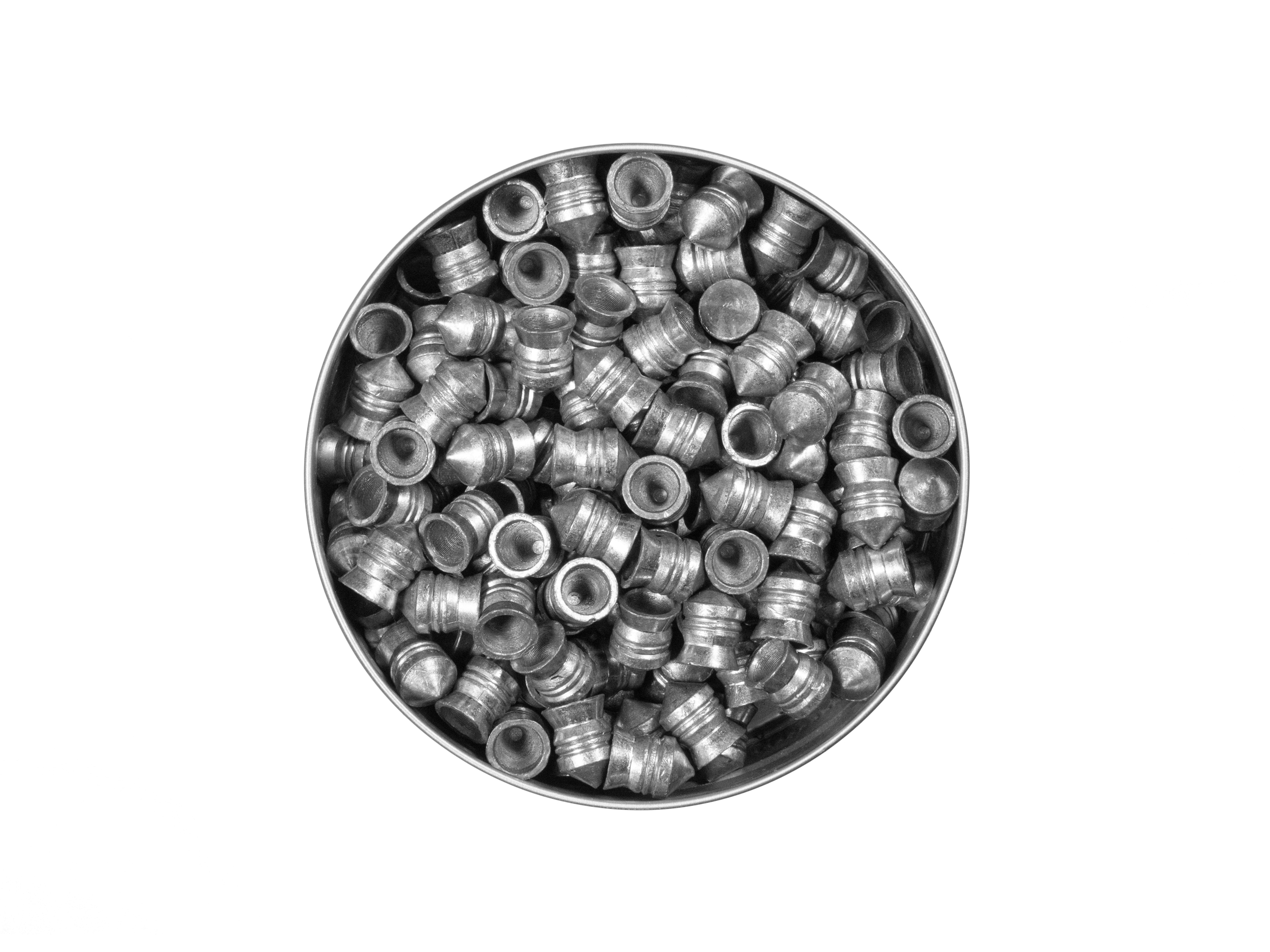 Opakowanie zawiera 150 sztuk śrucin, które umieszczono w solidnym aluminiowym pojemniku, chroniącym zawartość przed uszkodzeniem i rozsypaniem.