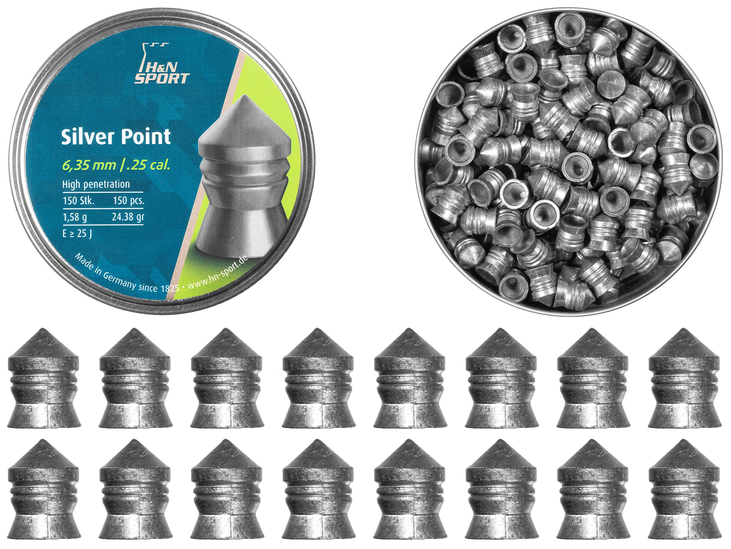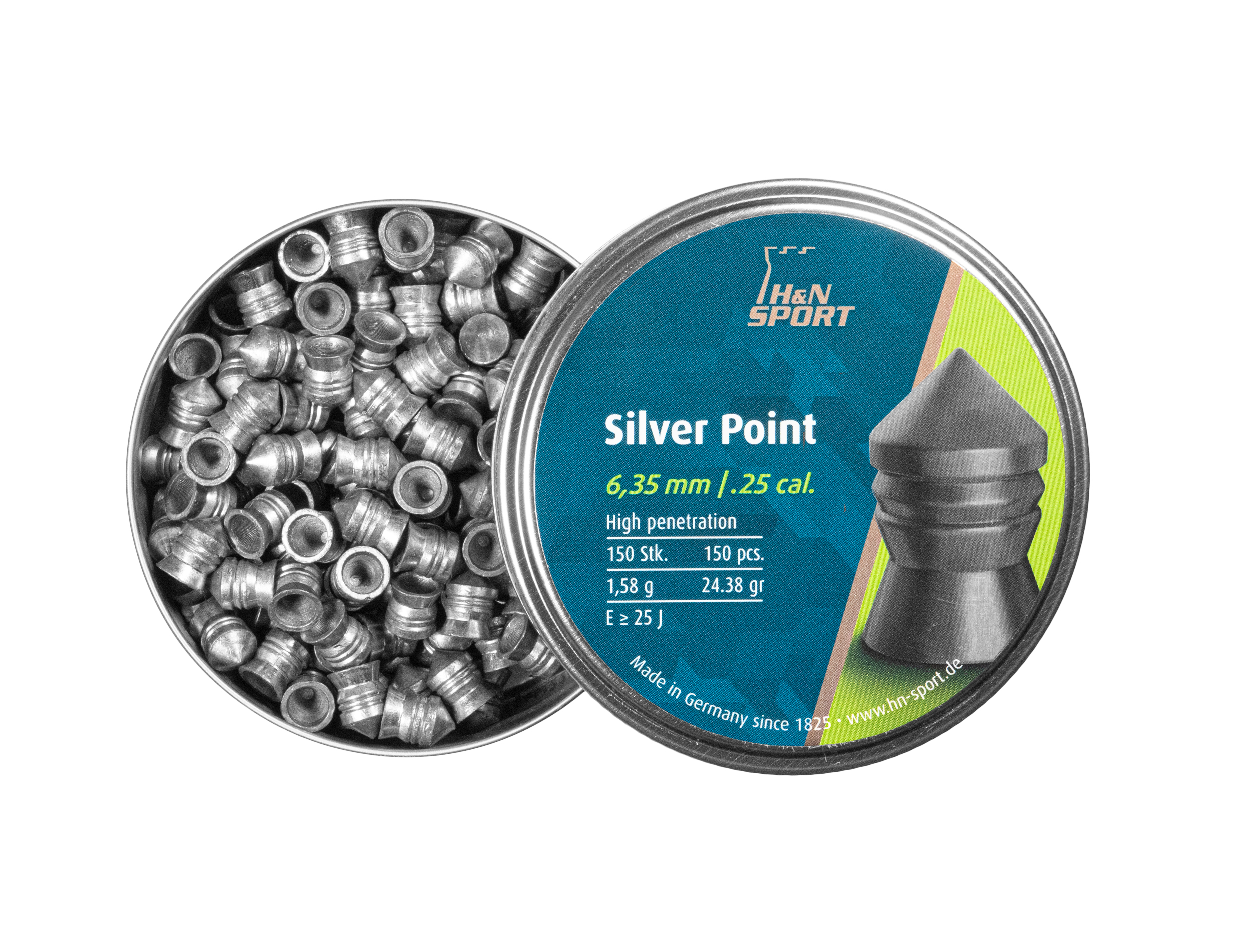 Śrut diabolo H&N Silver Point 6,35 mm 150 szt. to najcięższy model w swojej klasie, dedykowany strzelcom korzystającym z wiatrówek o wyjątkowo dużej prędkości początkowej. Wyprodukowany przez renomowaną niemiecką firmę H&N Sport, charakteryzuje się masą 1,58 g (24,23 gr), co gwarantuje wysoką energię kinetyczną, imponującą siłę przebicia oraz stabilny tor lotu na dłuższych dystansach.