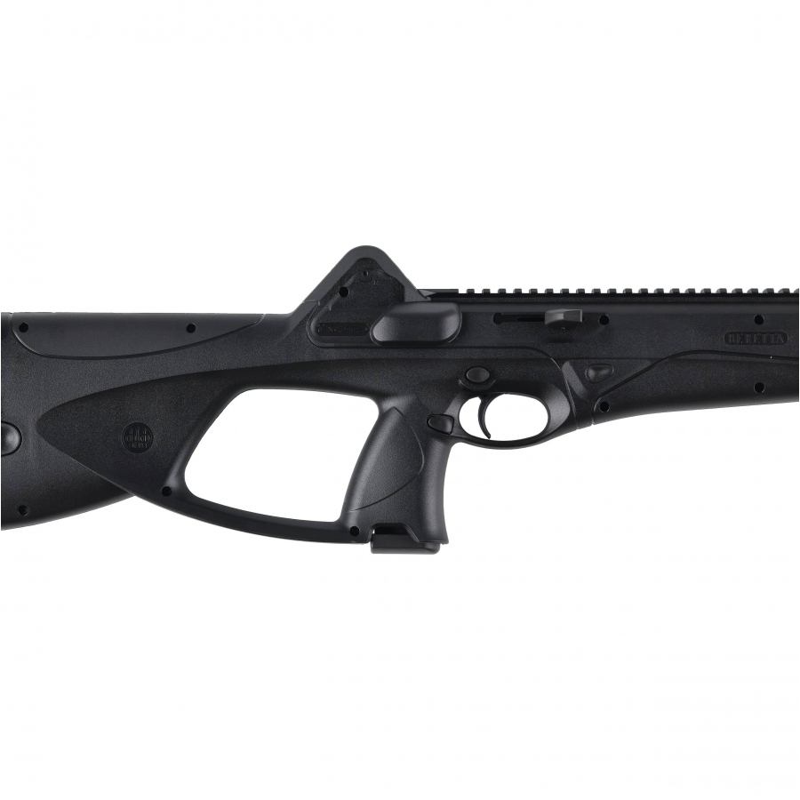 Beretta Cx4 Storm zachwyca nowoczesnym wyglądem, który łączy estetykę z funkcjonalnością. Polimerowa osada cechuje się trwałością, lekkością i ergonomiczną konstrukcją. Warto wyróżnić kolbę typu thumb-hole, która ułatwia stabilne trzymanie karabinka oraz zapewnia komfort podczas strzelania. Długa szyna Picatinny umożliwia montaż dodatkowych akcesoriów, takich jak celownik kolimatorowy czy optyczny.