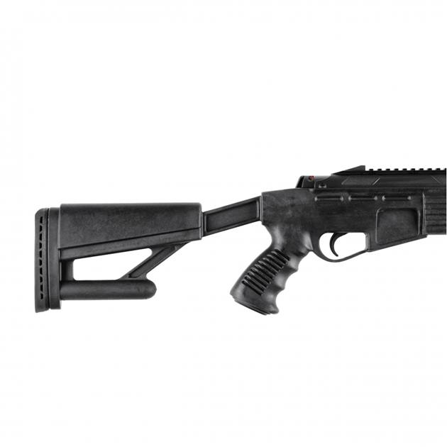 Jednym z kluczowych elementów modelu Optima by Hatsan AirTact Vortex jest jego nowoczesna konstrukcja. Kolba taktyczna z podwyższoną baką policzkową, o symetrycznym kształcie, umożliwia wygodne użytkowanie zarówno osobom prawo, jak i leworęcznym. Chwyt pistoletowy został zaprojektowany w taki sposób, aby zapewniać pewny i stabilny chwyt, co jest niezwykle ważne podczas dłuższych sesji strzeleckich. Na łożu i chwycie umieszczono wzdłużne ryflowania, które nie tylko podnoszą walory estetyczne karabinka, ale również poprawiają kontrolę nad nim.