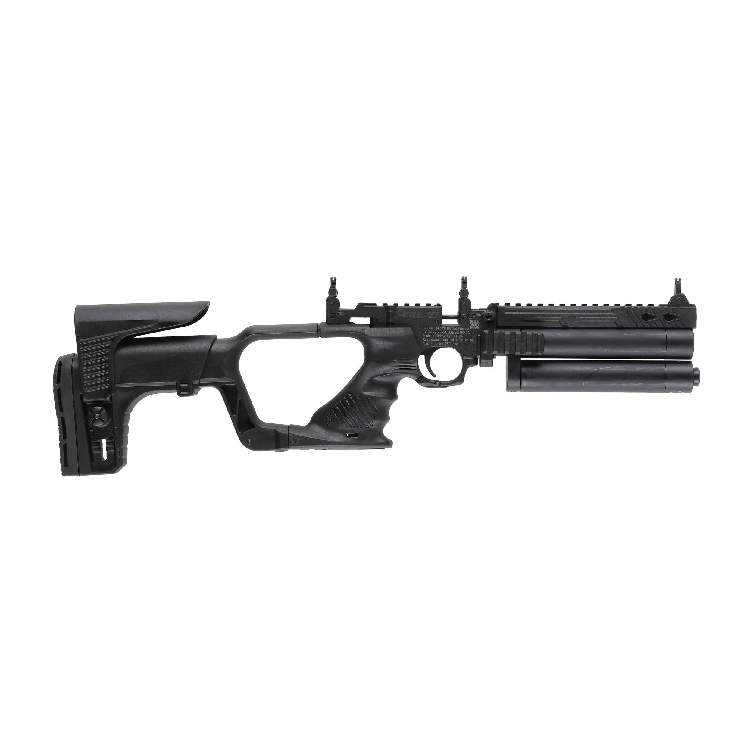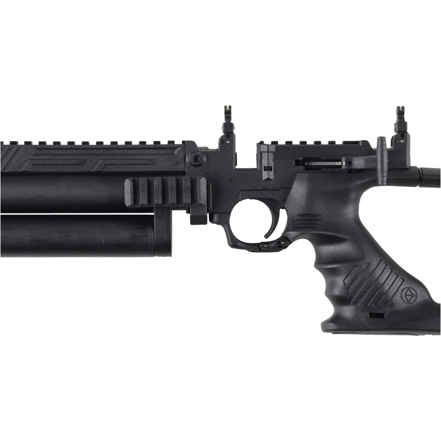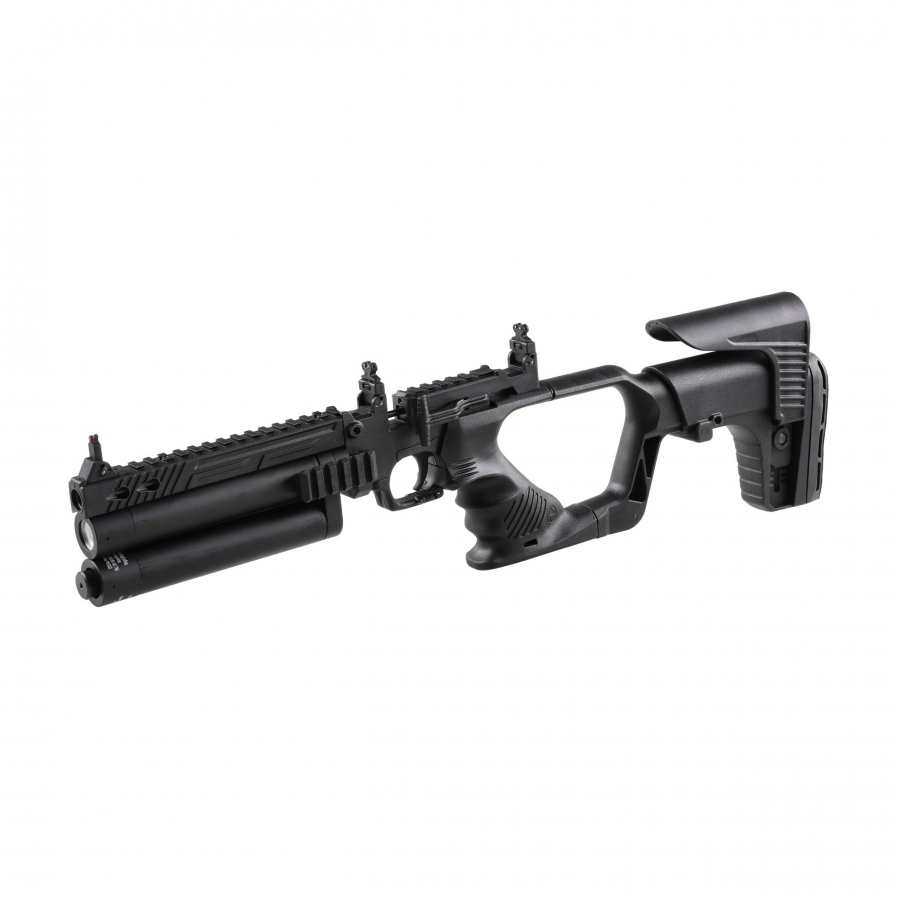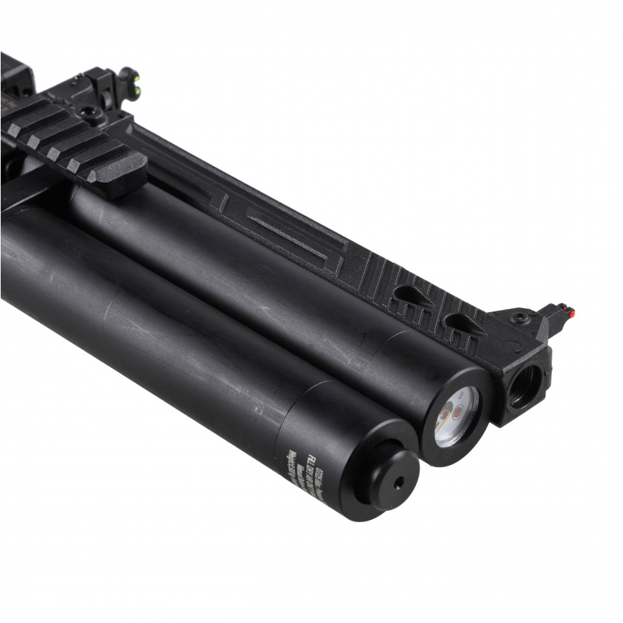 Podstawą działania Jet II jest zasilanie PCP, oparte na podwójnym zbiorniku 40 + 40 cc, napełnianym do 250 bar, co przekłada się na imponującą liczbę około 125 strzałów z jednego napełnienia. Dzięki temu możesz prowadzić długie sesje bez potrzeby przerywania treningu. Wbudowany manometr zapewnia stałą kontrolę ciśnienia, a manualny bezpiecznik w kabłąku spustu chroni przed przypadkowym oddaniem strzału. Całość zamknięta w kompaktowej i solidnej obudowie z polimeru sprawia, że Jet II to model wyjątkowo odporny na intensywne użytkowanie, a jednocześnie wygodny i intuicyjny w obsłudze.
