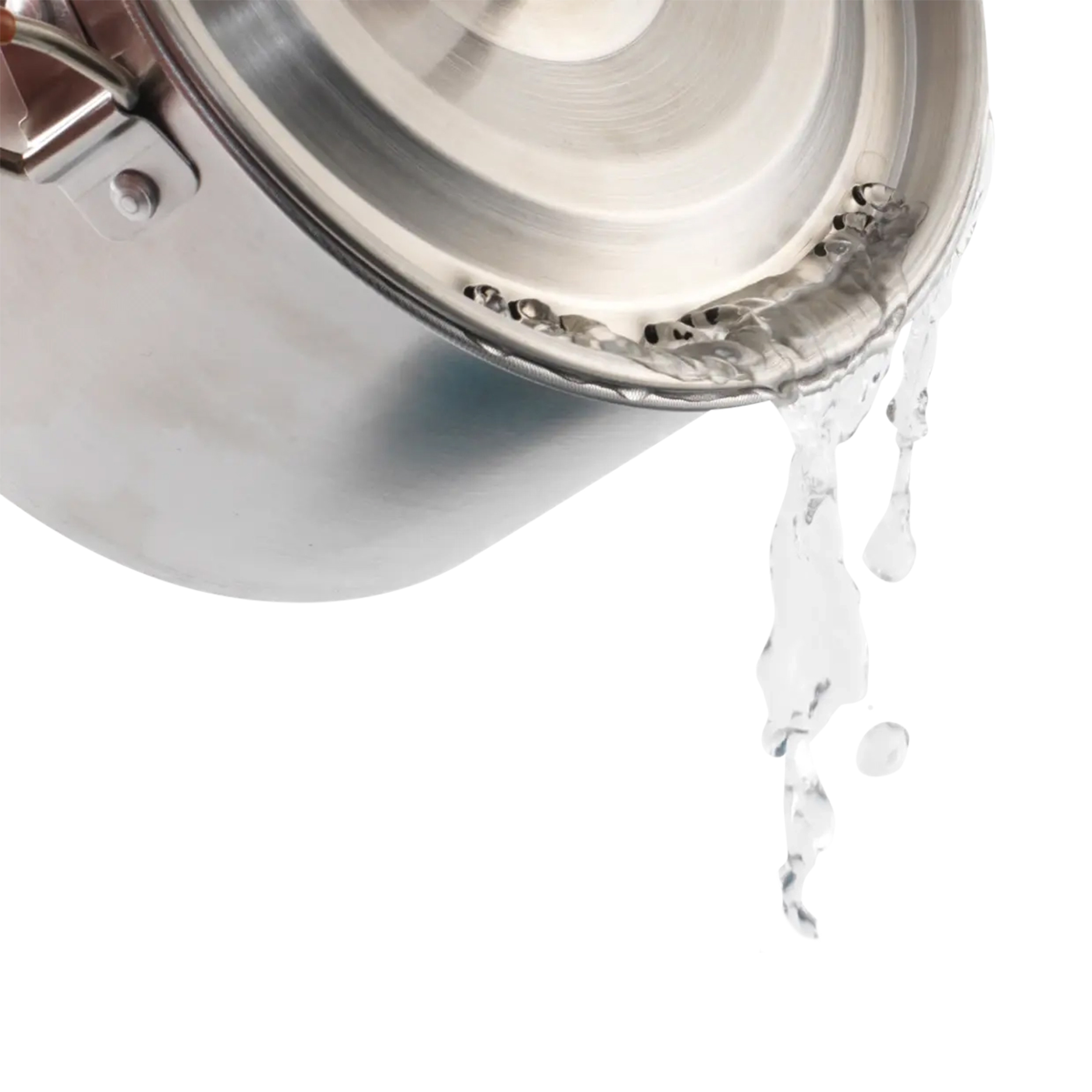 Bardzo użyteczne są również zintegrowane sitka umieszczone w pokrywce. Dzięki nim można sprawnie i bezpiecznie odcedzać wodę, bez konieczności zabierania dodatkowego durszlaka czy osobnego akcesorium kuchennego. Takie rozwiązanie szczególnie docenia się podczas gotowania makaronu, ryżu lub warzyw w warunkach biwakowych, gdzie każdy gram bagażu i każdy centymetr przestrzeni mają znaczenie. Ten zestaw naczyń kempingowych sprawia więc, że gotowanie staje się bardziej intuicyjne, wygodniejsze i lepiej dopasowane do realiów podróży. Nie bez znaczenia pozostaje także fakt, że wszystkie elementy zestawu nadają się do mycia w zmywarce, co po powrocie z wyjazdu pozwala szybko przywrócić komplet do idealnego stanu.